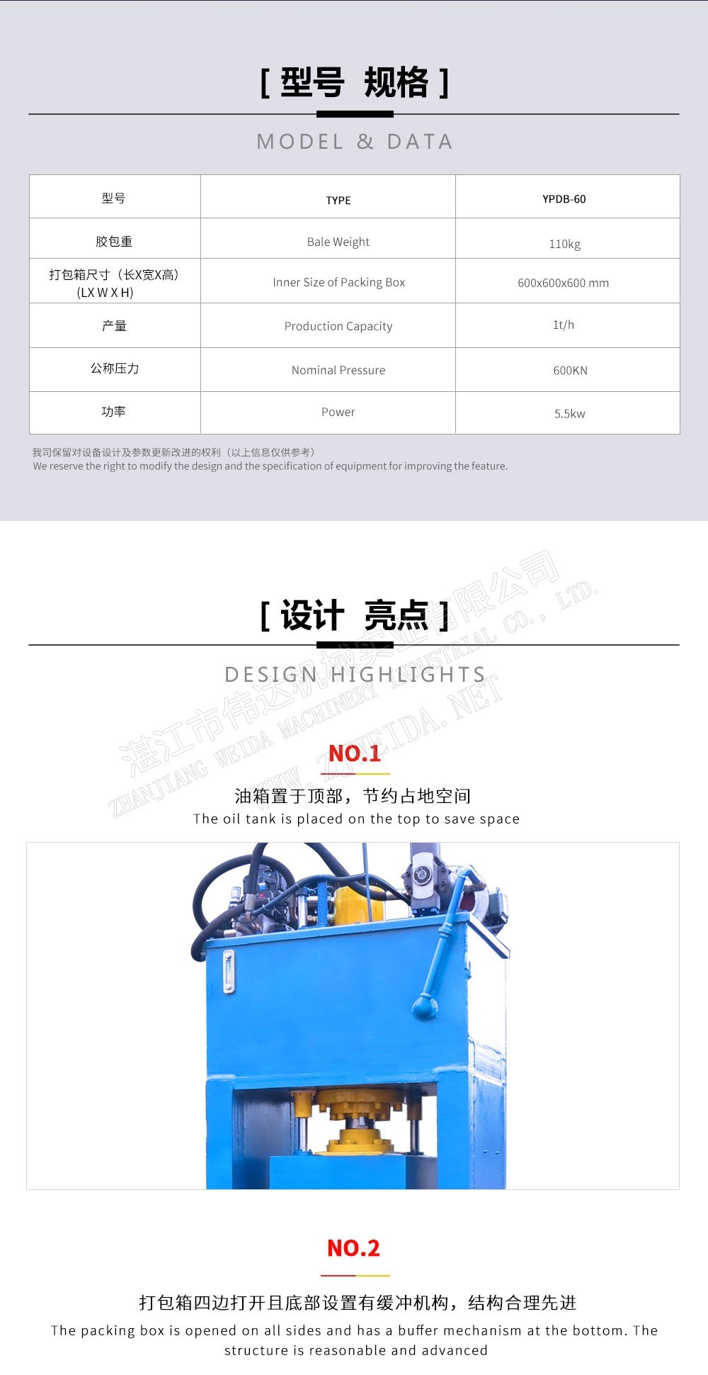 煙片膠打包機(jī)用于將片狀煙片膠壓緊打包,便于存儲(chǔ)存放及運(yùn)輸。